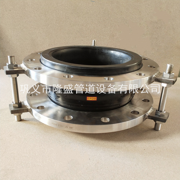 5.管道橡膠軟連接與管道碳鋼法蘭連接時,螺栓絲桿應伸向管道法蘭一端,以防止螺紋將受壓膨脹時管道橡膠軟連接的拱起部分擠傷或扎傷,每一端的螺栓必須對稱地加壓擰緊,使所有螺栓松緊一致,使用條件惡劣的場所,除增加平墊外,還應增加彈簧墊圈,以防螺母松動。